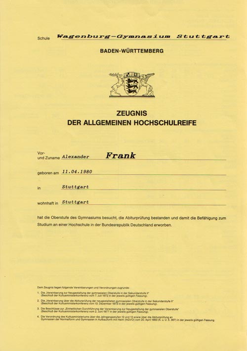 1990-1999 | Wagenburggymnasium Abschluß: Abitur (Note 2,4) |